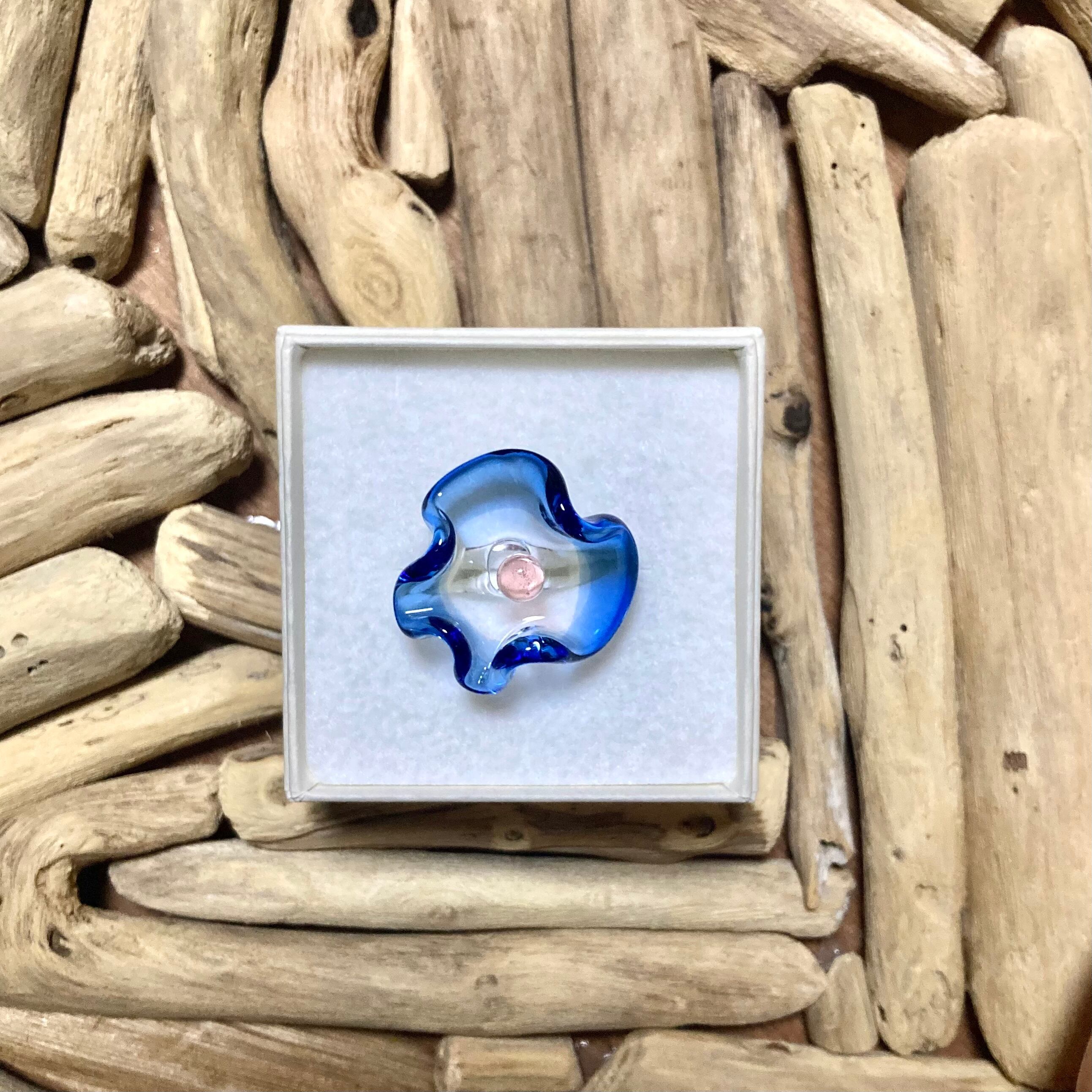 ふわっと指先に吹き抜けるような、淡いブルーのガラスが優しく指先に馴染みます。